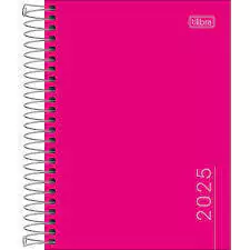 Agenda 2025 com 160 folhas, tamanho compacto e capa em papel couchê, ideal para organização e planejamento diário.