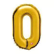 Balão metalizado número 0 na cor dourada, ideal para festas.