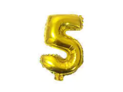 Balão metalizado dourado número 5, tamanho 40cm, reutilizável. Ideal para festas e decoração.