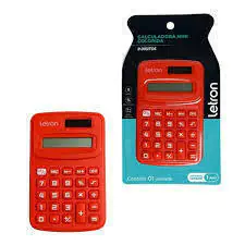 Calculadora compacta Letron com 8 dígitos, ideal para o dia a dia. Funciona com bateria inclusa e apresenta operações básicas e raiz quadrada.