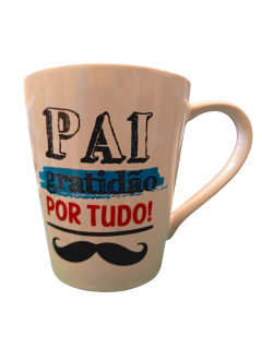 Caneca de porcelana 325ml com estampa "Pai, Gratidão Por Tudo", ideal para presentear.