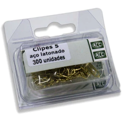 Clipes nº 5 de aço latonado ACC, caixa com 100 unidades.