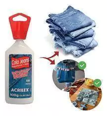 Cola Jeans Acrilex, 100g, ideal para colagem de tecidos grossos como jeans. Não tóxica
