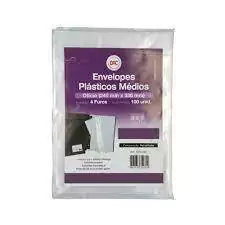 Envelope plástico médio formato ofício com 4 furos, ideal para pastas catálogo e proteção de documentos.