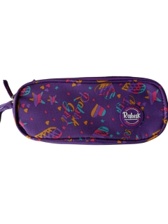 Estojo Duplo Juvenil Impermeável Rabisk Girl, roxo e vinho, ideal para organização de materiais escolares.