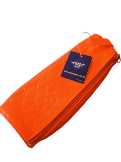 Estojo de silicone texturizado, laranja, ideal para armazenar lápis, canetas e outros acessórios escolares.