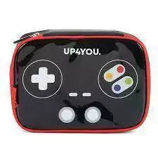 Estojo Up4You com estampa de controle de videogame, material 70% poliéster e 30% PVC, cor vermelho e preto.
