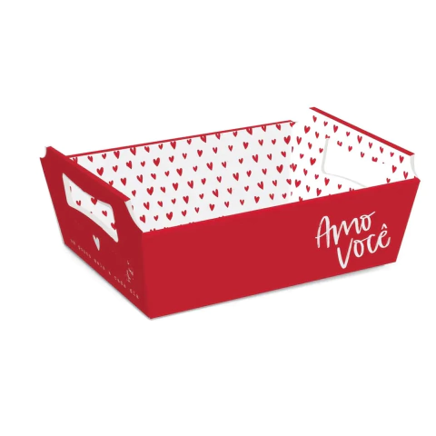 Kit cesta decorativa tamanho M, com mensagem "Amo Você", inclui embalagem e laço pronto.