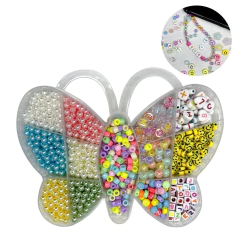 Kit completo de miçangas coloridas c/ linha, em formato de borboleta. Ideal para criar pulseiras e colares personalizados.