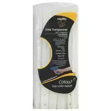 Bastão de cola quente semi transparente, ideal para colagens em madeira, papelão, papel, E.V.A e outros materiais. Vendido à unidade.
