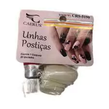 Unhas postiças Caerus com cola inclusa. Conjunto com 20 unidades para unhas perfeitas e práticas.
